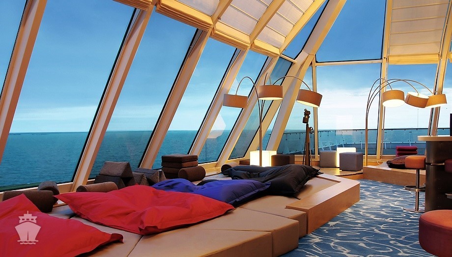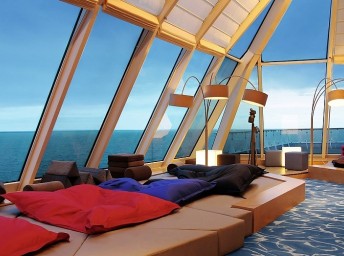Modrý balkón "The Blauer Balkong" na 14. palube - vyhliadková 11 m2 plošina zo skla vo výške 37m vám dá pocit, že sa vznášate nad morom.