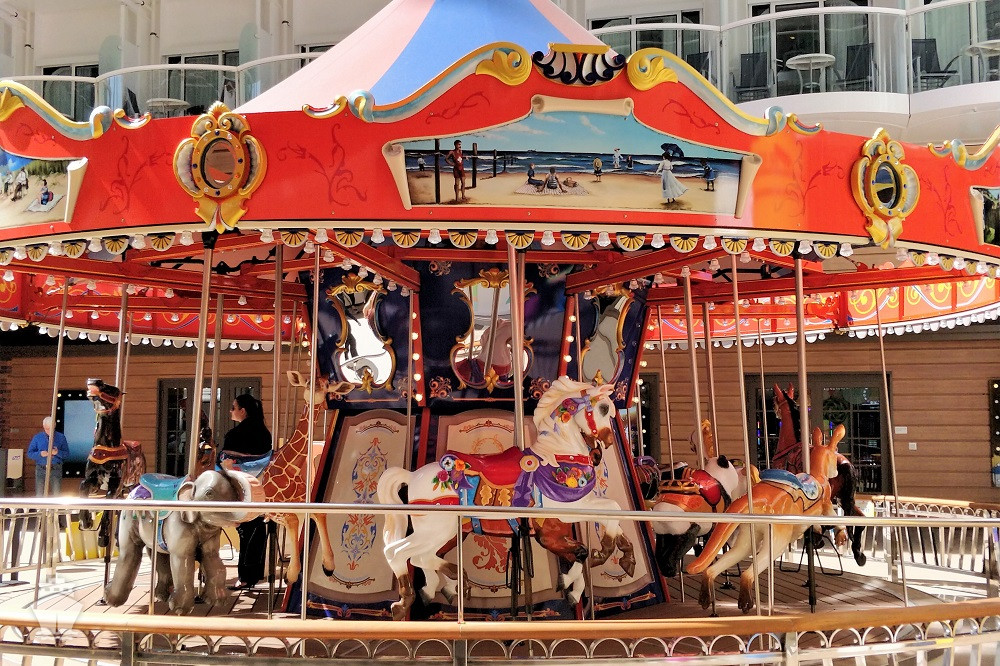 - Klasický ručne robený kolotoč na Boardwalk Arcade