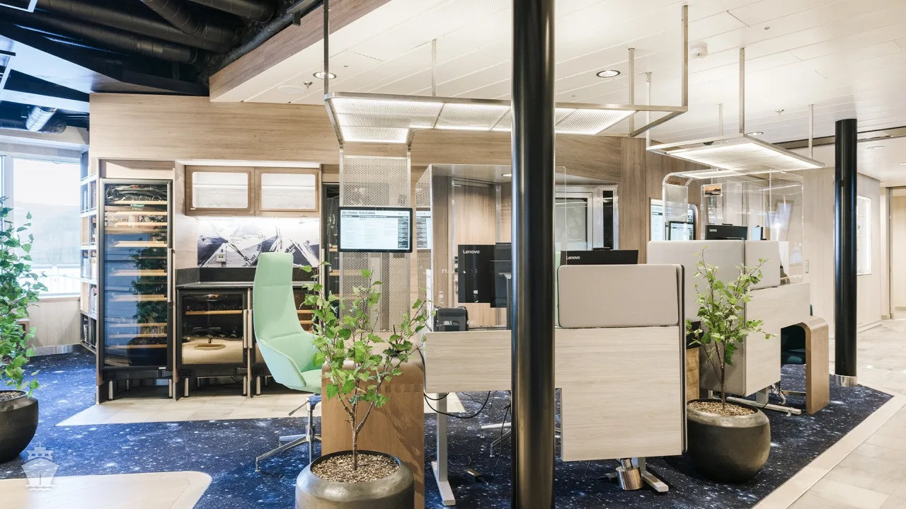 Úžasná scenéria sa odráža v bohatom a pohodlnom dizajne interiéru. Škandinávske prírodné materiály, ako žula, dub, breza a vlna, boli použité na vytvorenie štýlových kajút a verejných priestorov. Všetky kajuty sú vonkajšie, pričom 50 % má vlastný balkón, a apartmány na korme majú súkromné vonkajšie vírivky s nádherným výhľadom.
