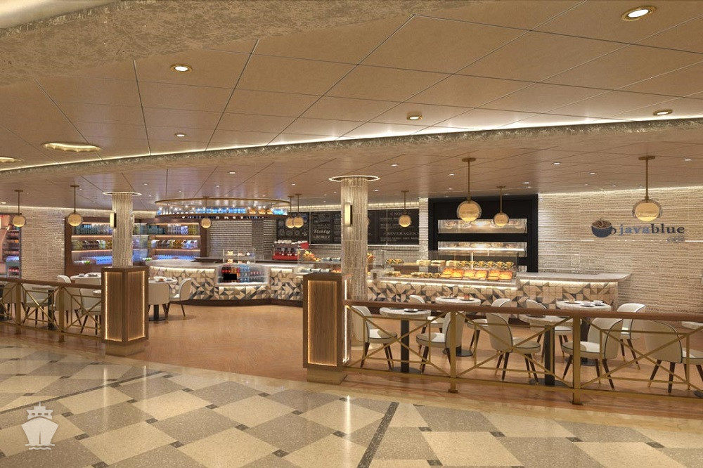 4. La Piazza: v talianskych farbách: Cucina del Capitano ponúka tradičné špeciality; v Pizzeria del Capitano sa podáva pizza 24 hodín denne a v stredomorskom bare majú autentické kávové nápoje a klasické talianske koktaily.