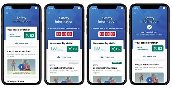Royal Caribbean nastavil aplikáciu pre smartfóny tak, aby bola v súlade s medzinárodnými zákonmi o námornej bezpečnosti, ktoré vyžadujú, aby všetci cestujúci na lodi boli oboznámení s tým, kam ísť, čo robiť a ako sa správať v prípade núdze na mori.