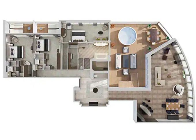 H2 - The Haven Deluxe Owner's Suite 136 m² / balkón 45 m². 18. paluba vpredu. Max 6 osôb. Výhody The Haven. | 7 502 € 3 751 € za osobu |