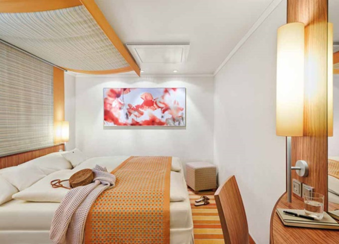 CA - Vonkajšia kajuta PREMIUM / obmedzený výhľad 14-16,5 m². Neotvárateľné okno / obmedzený výhľad. 6. paluba. Max 2 osoby. Cenový model Premium. | 2 010 € 1 005 € za osobu | ||