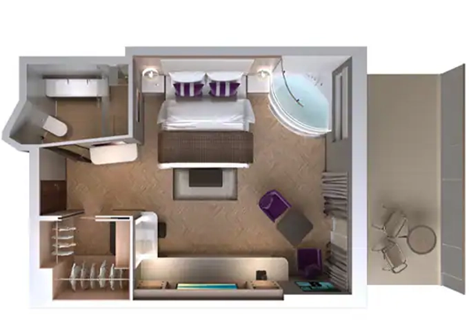 H5 - The Haven Family Villa - 2 spálne 57 m² / balkón 11 m². 17. paluba - vpredu, stred. Max 6 osôb. Výhody The Haven. | 23 236 € 11 618 € za osobu | ||