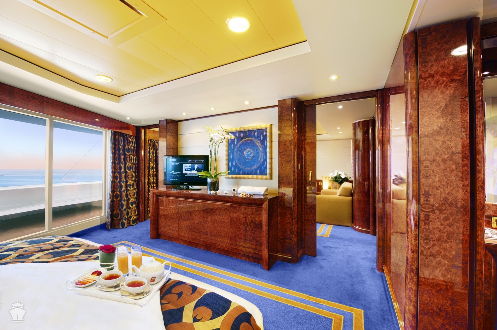 YCP - Yacht Club Deluxe Grand Suite 29 m² + balkón 6 m². Kúpeľňa s vaňou. 15/16. paluba. Cenový model MSC Yacht Club. | 2 434 € 1 217 € za osobu |