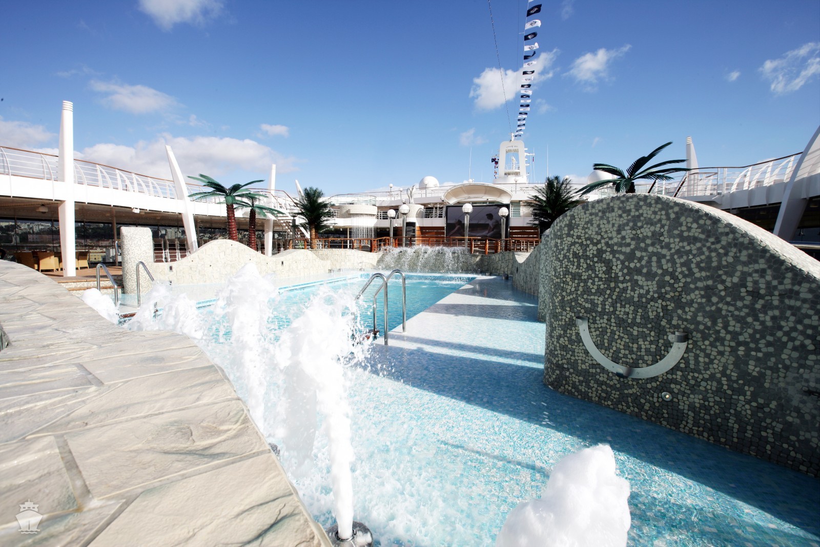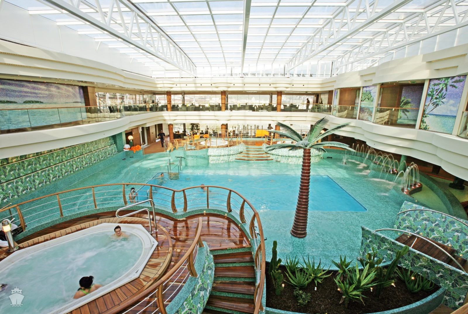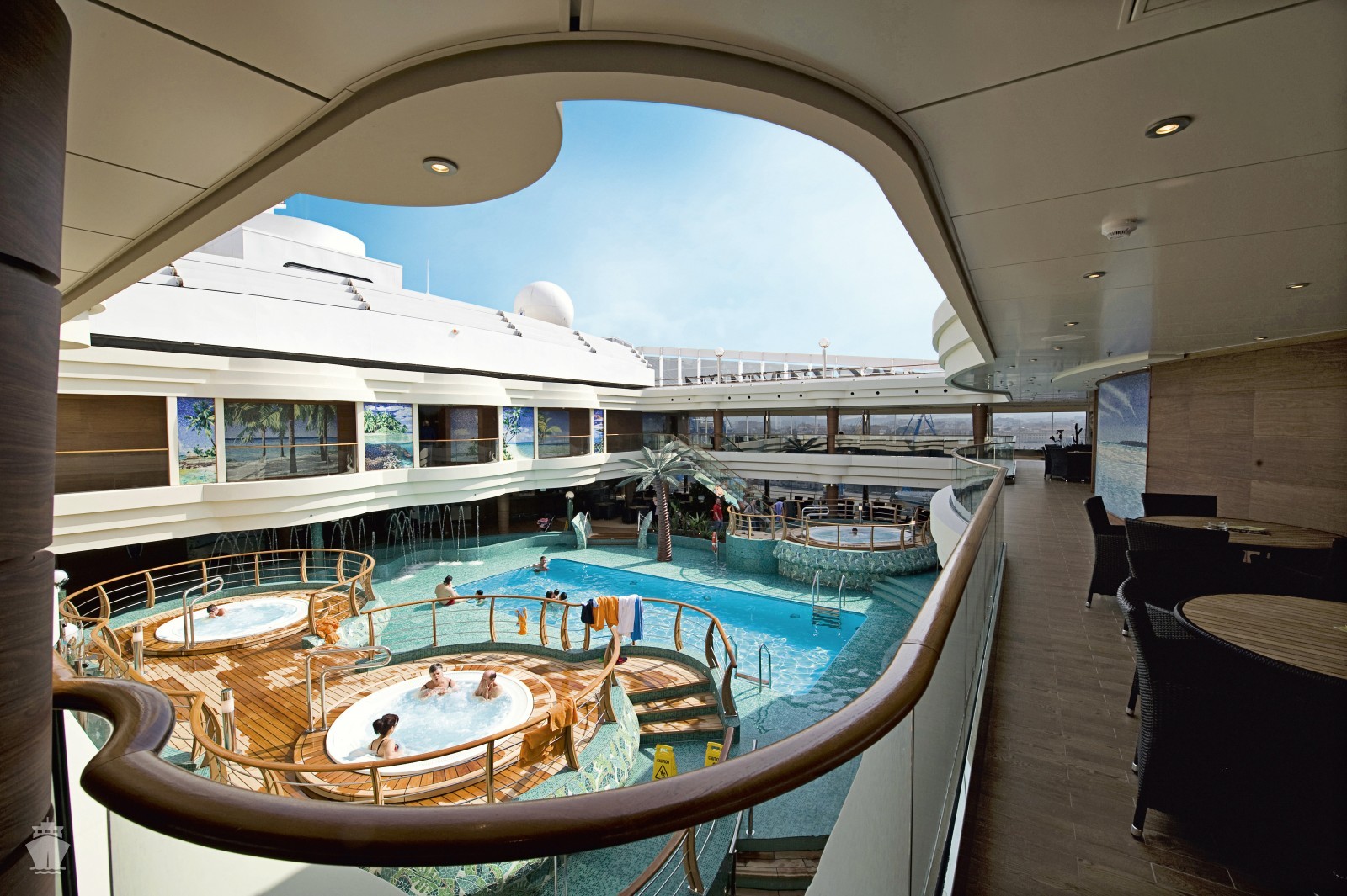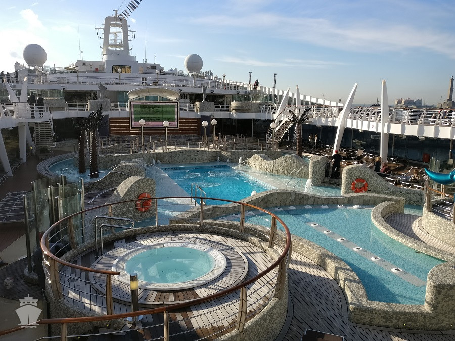 - Športové aktivity na otvorených palubách (jogging, basketbal, futbal, tenis), bazény a ležadlá