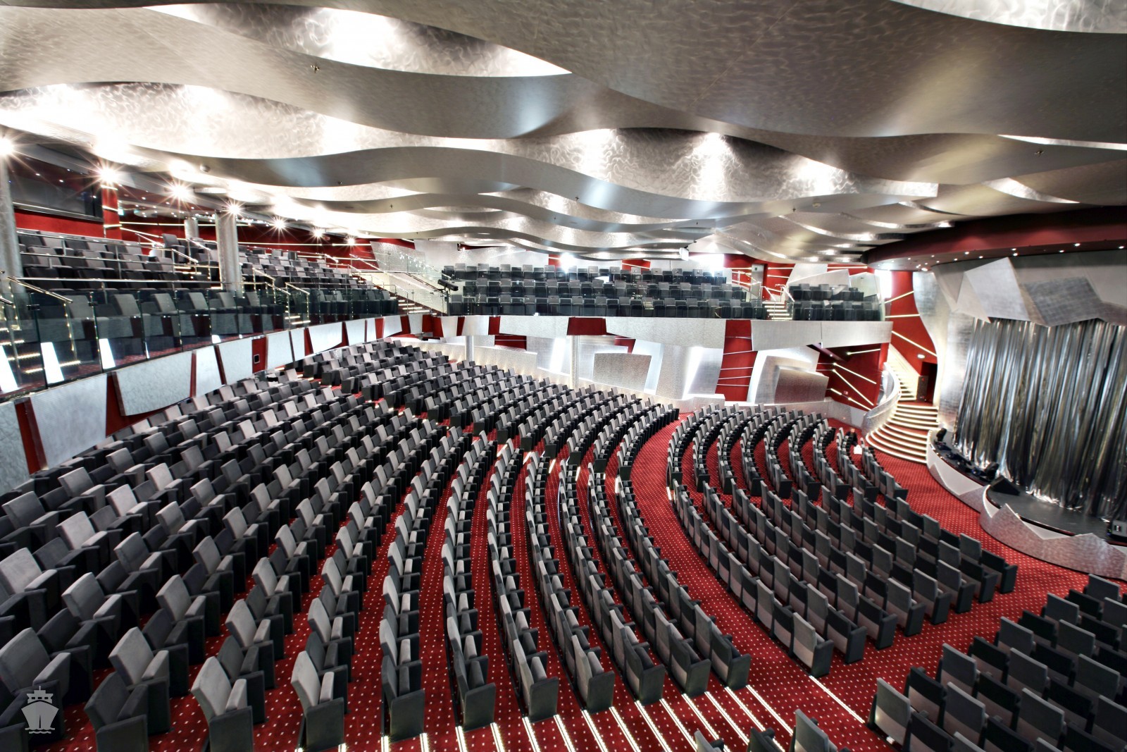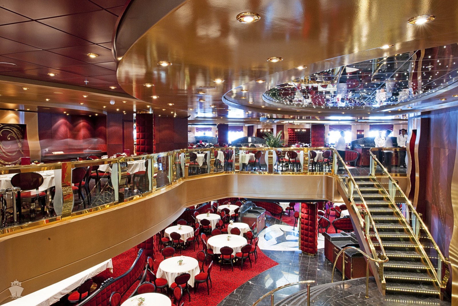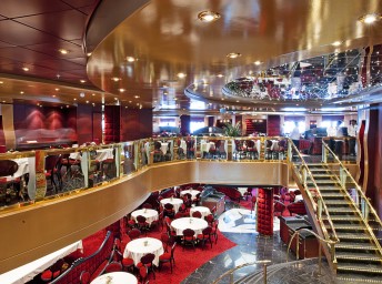 Red velvet - rozdelená medzi 2 palubia (5. - 6. paluba) s kapacitou 1155 hostí. Otvorená ako voľné sedenie na raňajky 7:00-9:00 a obed 12:00-15:00. Pri večeri je zasadací poriadok a turnusy o 19:00 a 21:30.
