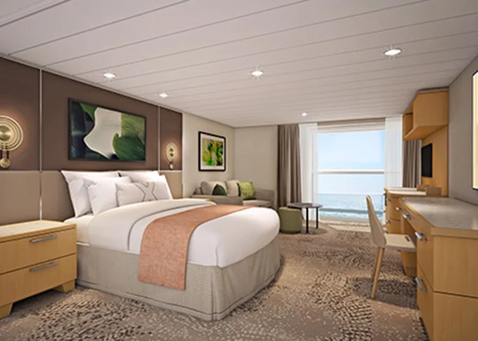 PD - Deluxe Panoramic Ocean View Suite 34 m². 12. paluba vpredu. Max 3 osoby. Výhody Suite The Retreat. | 18 082 € 9 041 € za osobu | ||