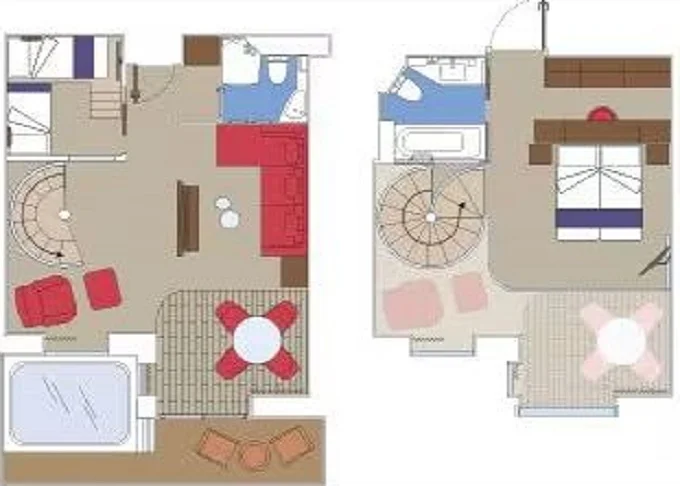 YJD - Yacht Club Duplex Suite s vírivkou 46 m² + balkón 30 m². Vírivka. 2 podlažia, šatník, 2 kúpeľne (1 s vaňou). Max 4 osoby. 16. paluba. Cenový model MSC Yacht Club. | 9 622 € 4 811 € za osobu | ||