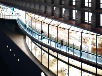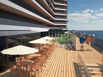 "360° Waterfront boardwalk" – promenáda okolo celej lode, ktorej súčasťou je prechádzka cez priehľadnú podlahu pre ešte väčší zážitok z plavby.